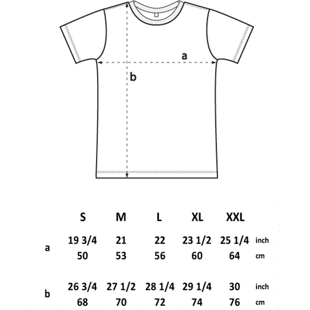Frauen wird empfohlen eine Kleidergröße kleiner als üblich zu nehmen, wenn das T-Shirt eng anliegend sein soll.
